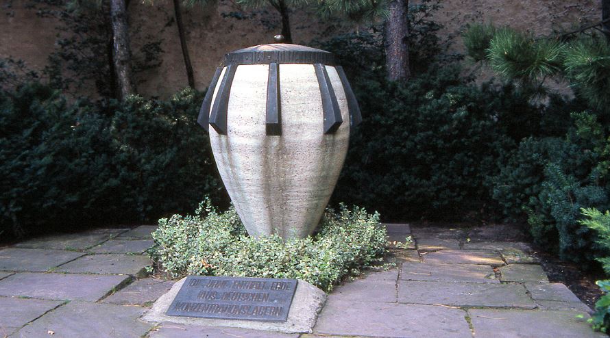 A l'entrée , une urne remplie de terre en provenance des camps de concentration en souvenir de toutes les victimes.
