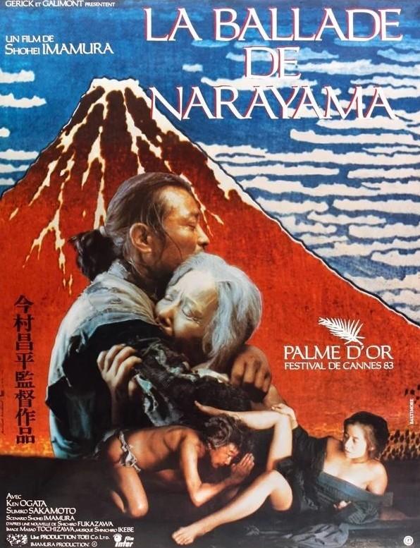 T.O.: Narayama bushikō. Réalisation, Scénario: Shōhei Imamura, Shichirō Fukazawa. 1983; 131'. Avec: Ken Ogata (Tatsuhei), Sumiko Sakamoto (Orin), Aki Takejo (Tamayan), Mitsuko Baishô (Oei), Kêshî Takamine (vieillard), Nijiko Kiyokawa (Okane), Tonpei Hidari (Risuke), Seiji Kurasaki (Kesakichi), Kaoru Shimamori (Tomekichi), Ryutaro Tatsumi (Matayan), Junko Takada (Matsu), Taiji Tonoyama (chef village), Shoichi Ozawa (Katsuzo, cadet v), Fujio Tokita (Jinsaku, cadet v), Norihei Miki (Shioya, marchand), Ben Hiura (Yakimatsu)